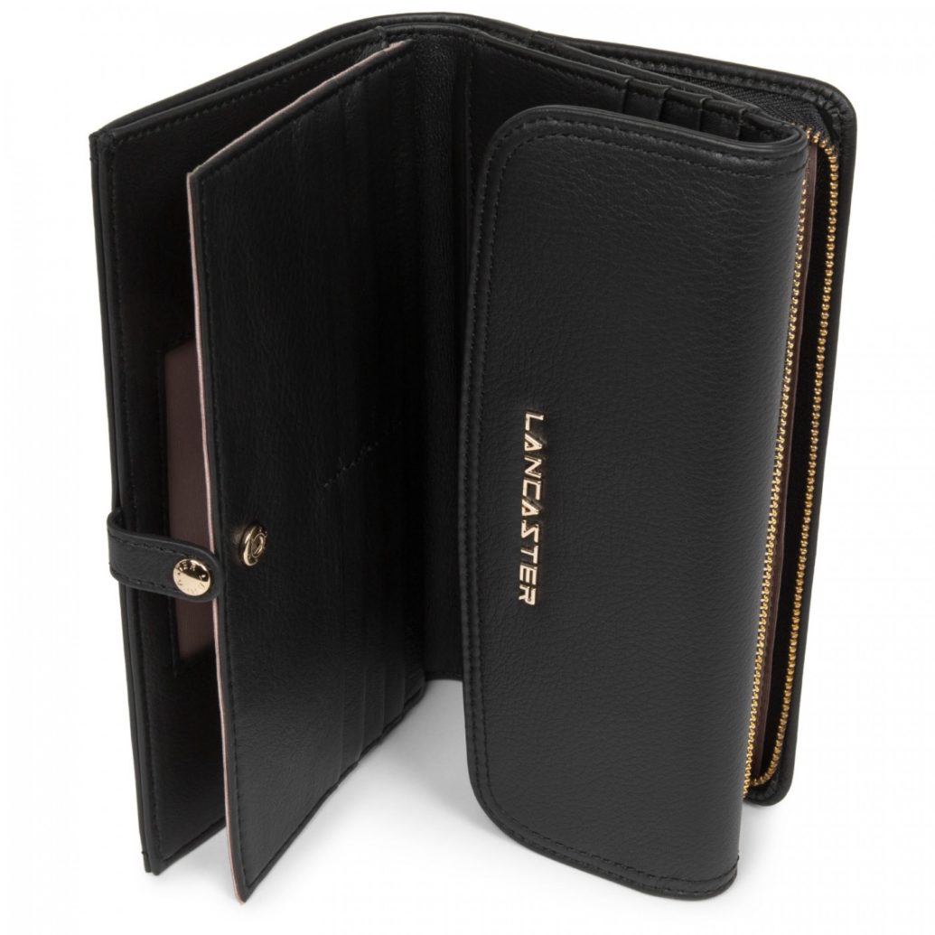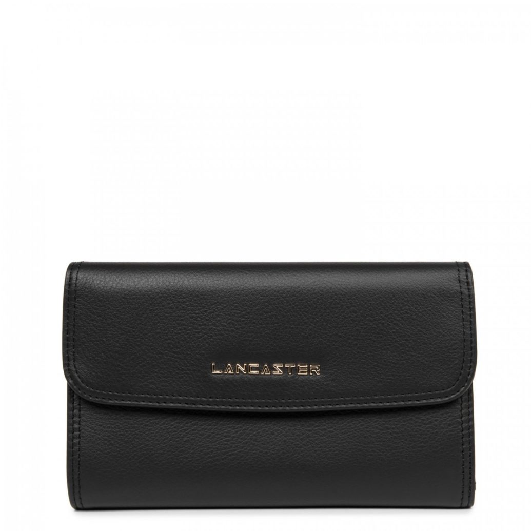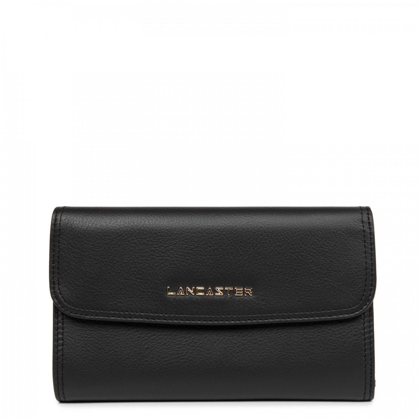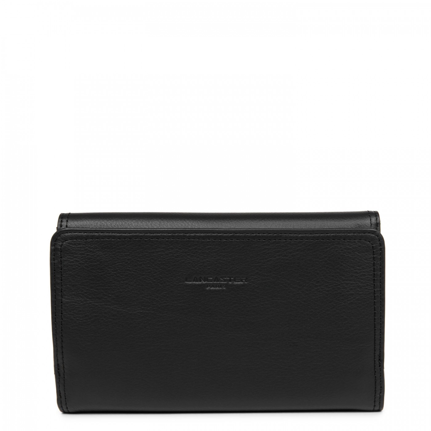 Fermeture à rabat avec bouton-pression : 16 emplacements cartes, 1 poche simple, porte-billets et volet à pression avec emplacement carte d’identité et porte-chéquier;
