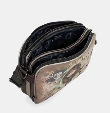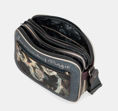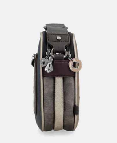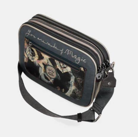 - Poches: 3 compartiments, 1 poche arrière, 1 poche pour téléphone portable et 1 portefeuille.