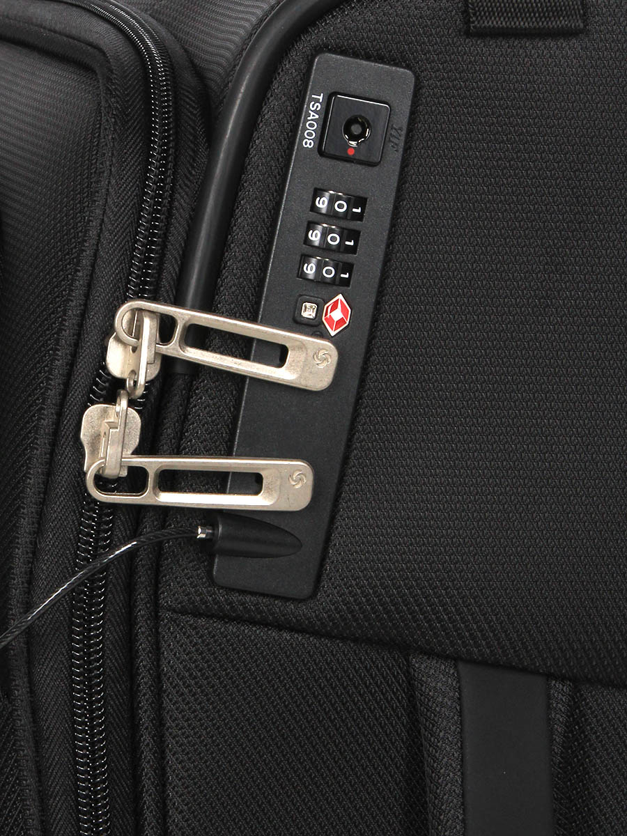 La valise extensible Samsonite Respark présente des mesures de anti-effraction particulièrement efficaces : serrure TSA à code, câble pour sécuriser toutes les fermetures à glissière, et double zip lorsque le soufflet est fermé. Elle se tracte aisément avec son trolley double tube ajustable et ses deux roulettes. Deux poignées moussées permettent en outre de la soulever confortablement. Le porte étiquette rétractable permet de la retrouver facilement en cas de perte. Elle reste stable en toutes circonstances grâce à ses patins de protection.