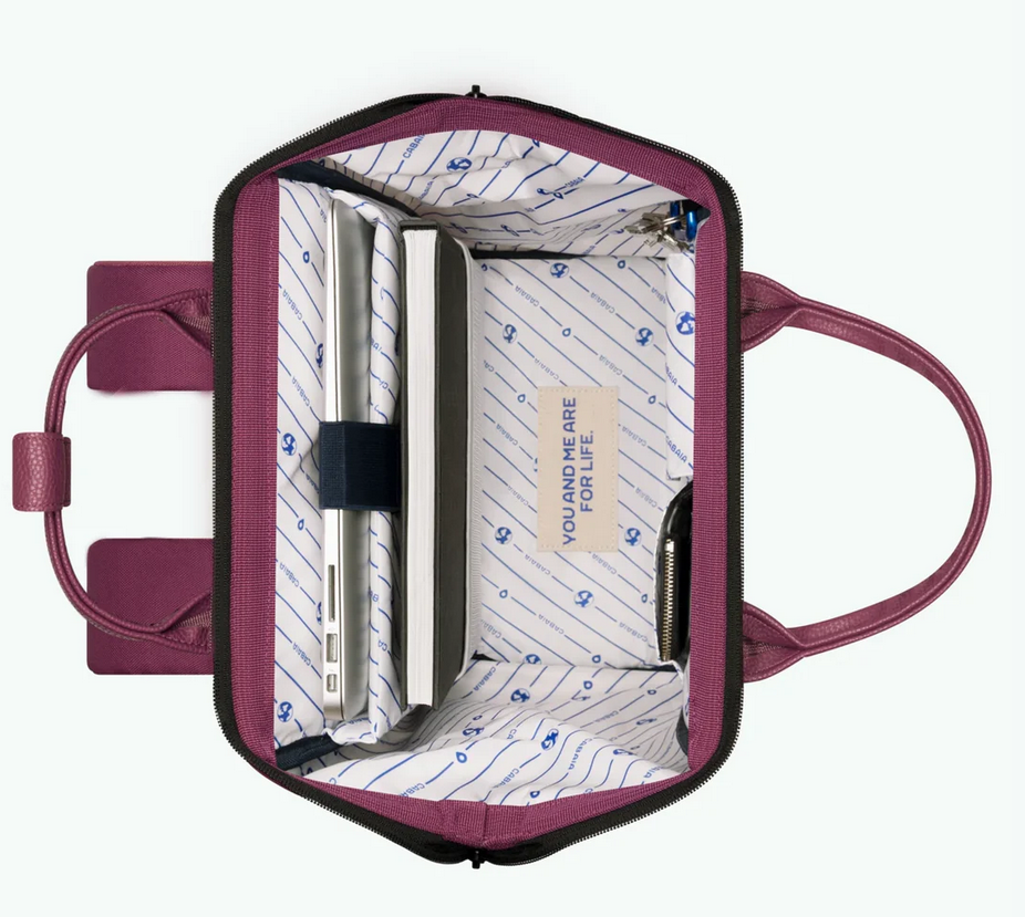 Il pourra contenir un gros classeur, une bouteille d’eau 50 cl (il y a même un élastique de maintien !) ou même quelques vêtements.
