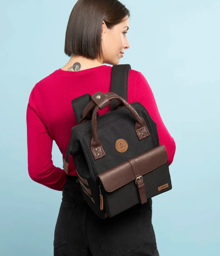 32 cm – 12 litres – 0.7 kg ~ Adoptez le sac à dos vegan signé Cabaia ! De la ligne « Tour du Monde », ce sac à dos Mini sera votre compagnon idéal, aussi bien pour les cours que pour voyager. On craque pour sa poche frontale amovible et interchangeable. Réalisé à partir de Nylon 900D la toile est très résistante.
