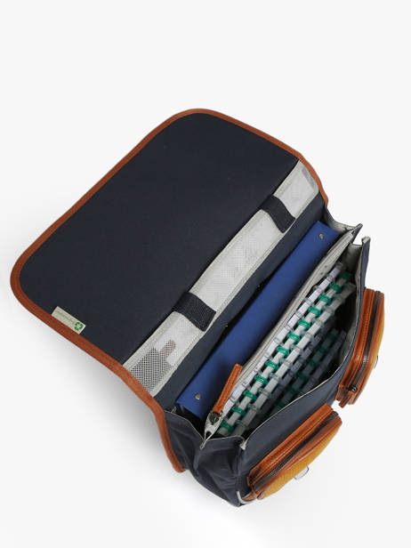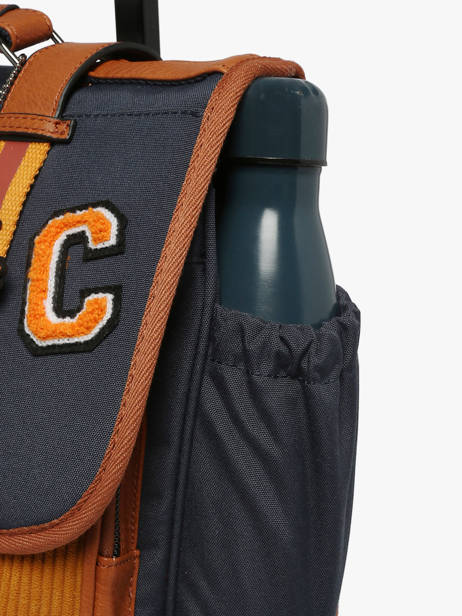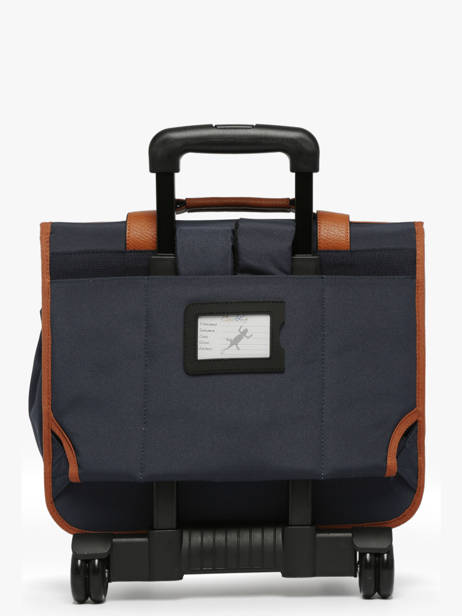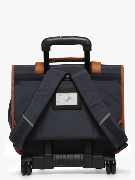 38 cm – 21 litres – 2.38 kg ~ Cartable à roulettes enfant 38 cm de la ligne Vintage Urban signé Caméléon. Idéal pour le CP, CE1 et CE2. Composé de 2 compartiments séparés par une poche centrale zippée, ce cartable enfant est pensé pour ranger toutes les affaires scolaires. Il peut contenir du format cahiers A4. Pratique, l’intérieur se compose d’un emplacement spécial règle. A l’extérieur il y a un emplacement pour la gourde. Les poches extérieures zippées sont idéales pour ranger les petits effets comme l’agenda ou le goûter. Pour faire rouler le cartable, les bretelles doivent être rangées dans la poche au dos. A la fois renforcé et rembourré, ce cartable assure confort et résistance. Côté sécurité, il dispose de bandes réfléchissantes sur le devant et sur les bretelles du cartable. Fabriqué en polyester recyclé imperméable. Petit plus, la règle est offerte !