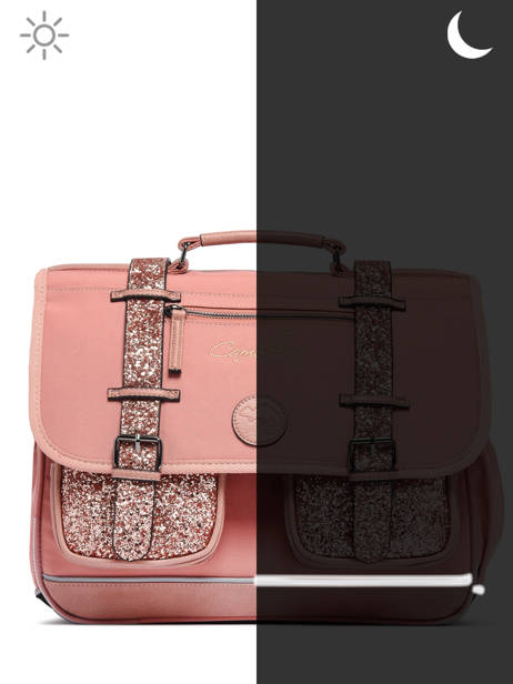 38 cm – 21 litres – 2.33 kg ~ Cartable à roulettes 38 cm de la ligne Vintage Fantasy signé Caméléon. Idéal pour le CP, CE1 et CE2. Composé de 2 compartiments séparés par une poche centrale zippée, ce cartable enfant est pensé pour ranger toutes les affaires scolaires. Les trois poches extérieures zippées sont idéales pour ranger les petits effets comme l’agenda ou le goûter. Fonctionnel, le cartable a un emplacement pour la gourde à l’extérieur. Pour faire rouler le cartable, les bretelles doivent être rangées dans la poche au dos. A la fois renforcé et rembourré, ce modèle assure confort et résistance. Côté sécurité, ce cartable dispose de bandes réfléchissantes sur le devant et sur les bretelles du cartable. Le cartable à roulettes Caméléon est fabriqué en polyester recyclé imperméable. Petit plus, la règle est offerte !