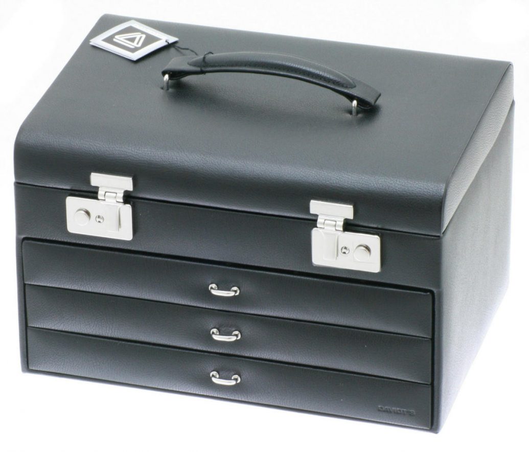 Coffret bijoux, collection Euclide, façon cuir grainé. Modèle innovant, finition très soignée, de la marque Davidt’s.