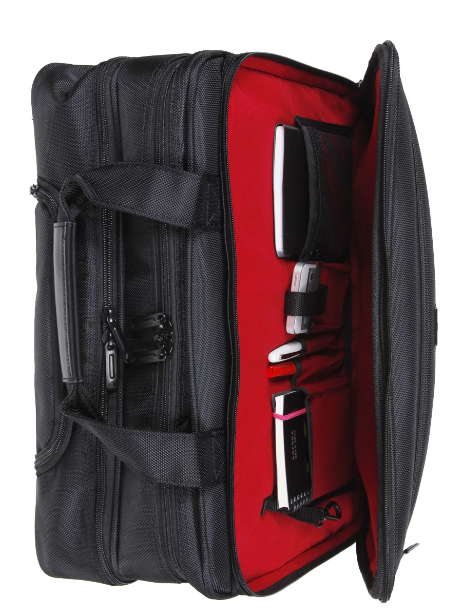 Le compartiment situé à l’arrière permet de ranger des dossiers et des documents. Le compartiment avant permet de ranger, outre des dossiers, des stylos, un téléphone portable et même des clés grâce au mousqueton intégré. Enfin, une poche plate zippée est à disposition à l’avant pour y ranger des effets personnels ou encore des journaux.