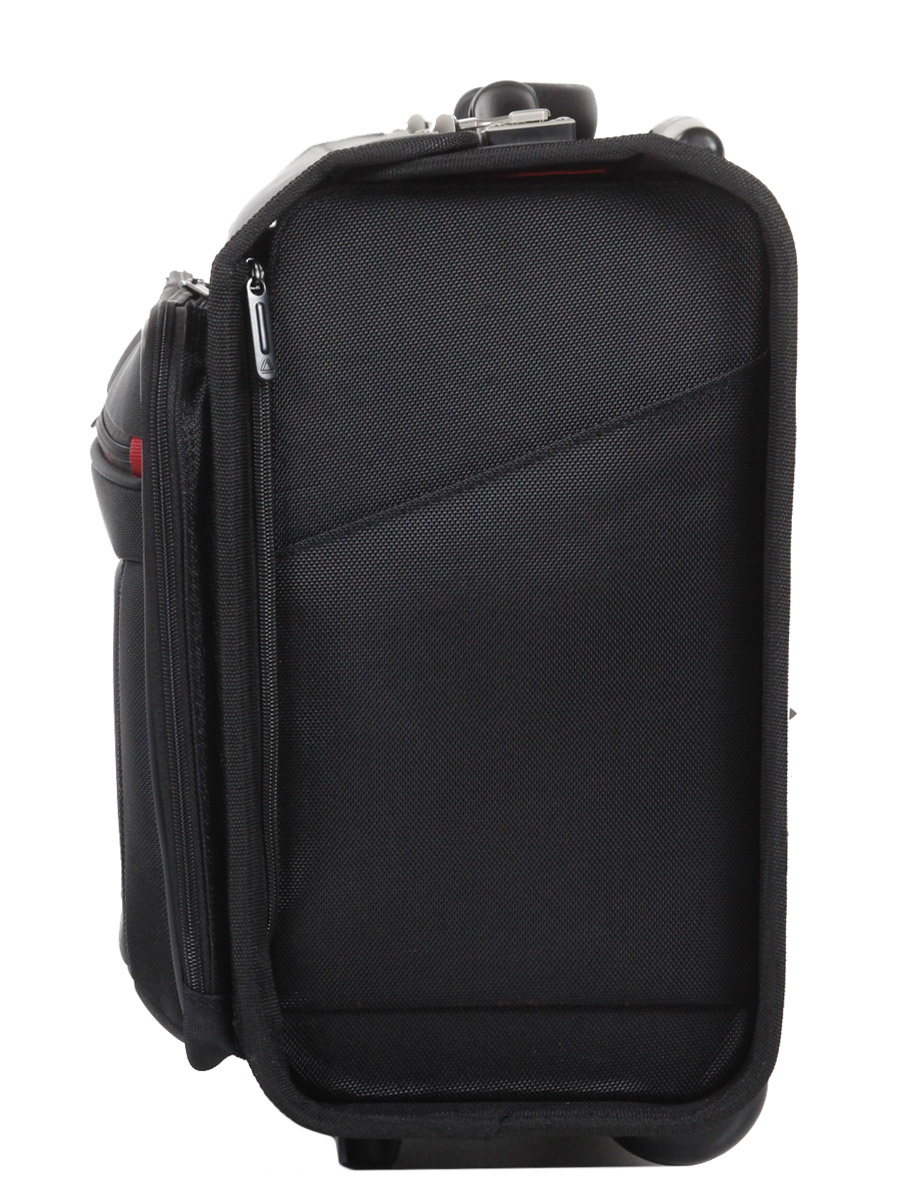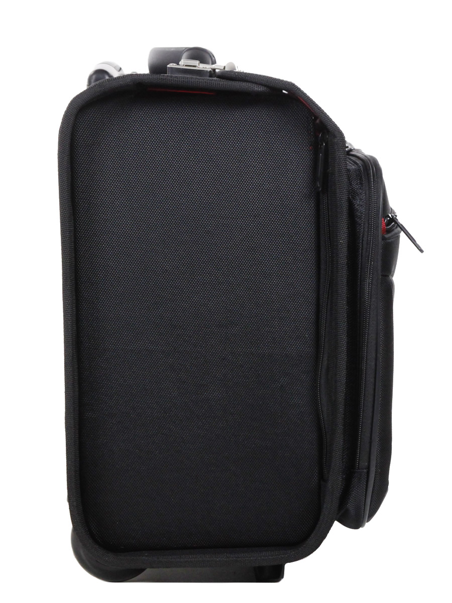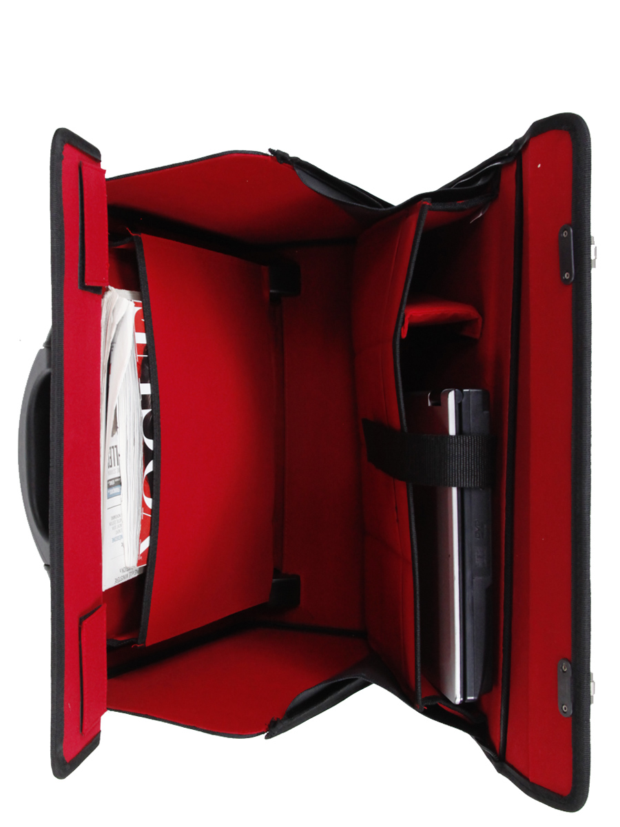 En ouvrant les deux fermetures éclairs latérales, la partie avant bascule, permettant ainsi d’avoir une meilleure visibilité sur les effets placés à l’intérieur. Ce pilot case souple Davidt’s Monte-Carlo est également équipé d’un trolley monté sur deux roulettes, ainsi que d’une poignée sur le haut afin de le transporter sans effort.