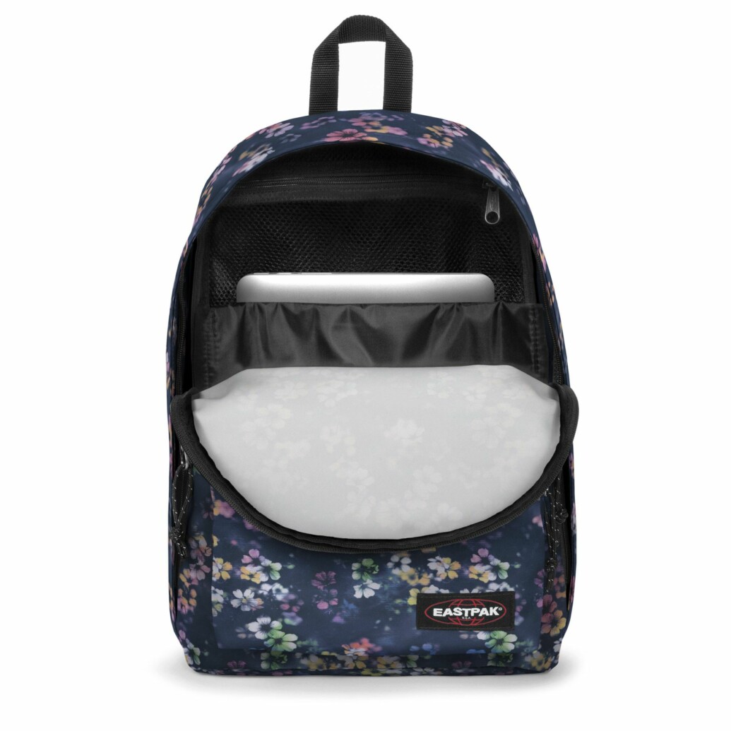 Côté intérieur, ce sac à dos Eastpak Out Of Office dispose d’un grand compartiment principal, muni d’une large poche ordinateur. Cette dernière est renforcée, fermée par un scratch et permet le rangement d’un ordinateur portable 13.3 pouces en toute sécurité. Au dessus, une petite poche filet peut servir a sérier ses accessoires. A l’extérieur, il est équipé d’une petite poche zippée, pratique pour un rangement de dernière minute.