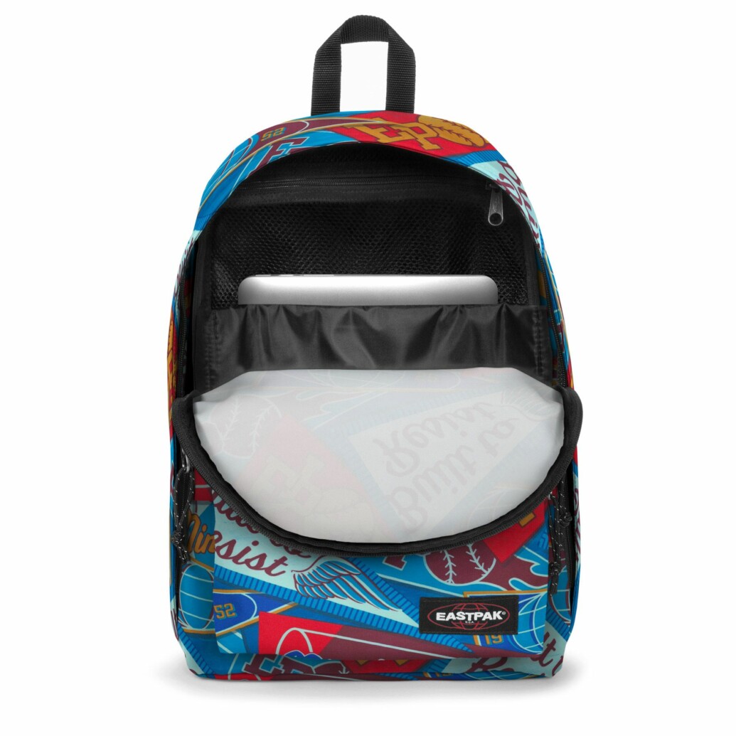 Côté intérieur, ce sac à dos Eastpak Out Of Office dispose d’un grand compartiment principal, muni d’une large poche ordinateur. Cette dernière est renforcée, fermée par un scratch et permet le rangement d’un ordinateur portable 13.3 pouces en toute sécurité. Au dessus, une petite poche filet peut servir a sérier ses accessoires. A l’extérieur, il est équipé d’une petite poche zippée, pratique pour un rangement de dernière minute.
