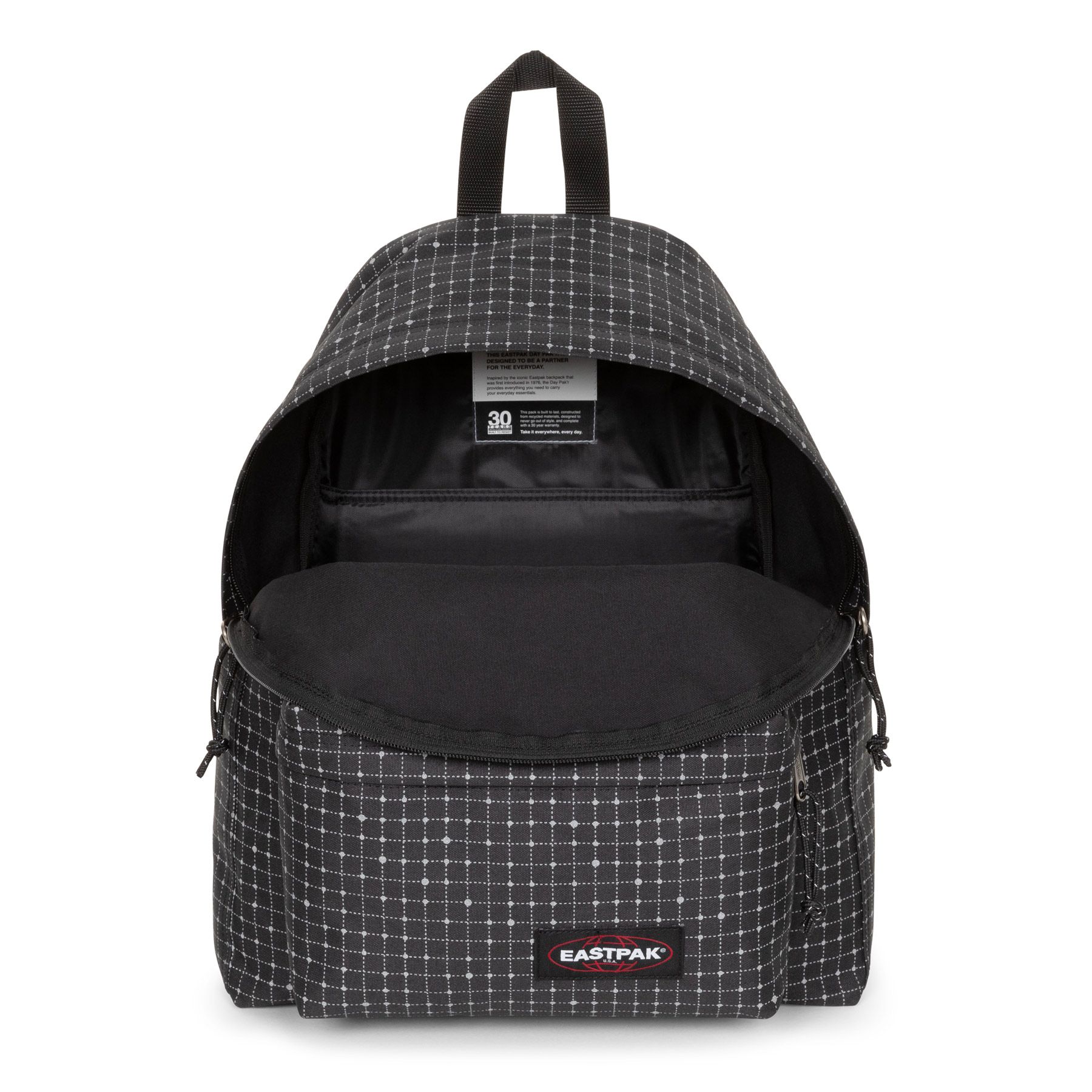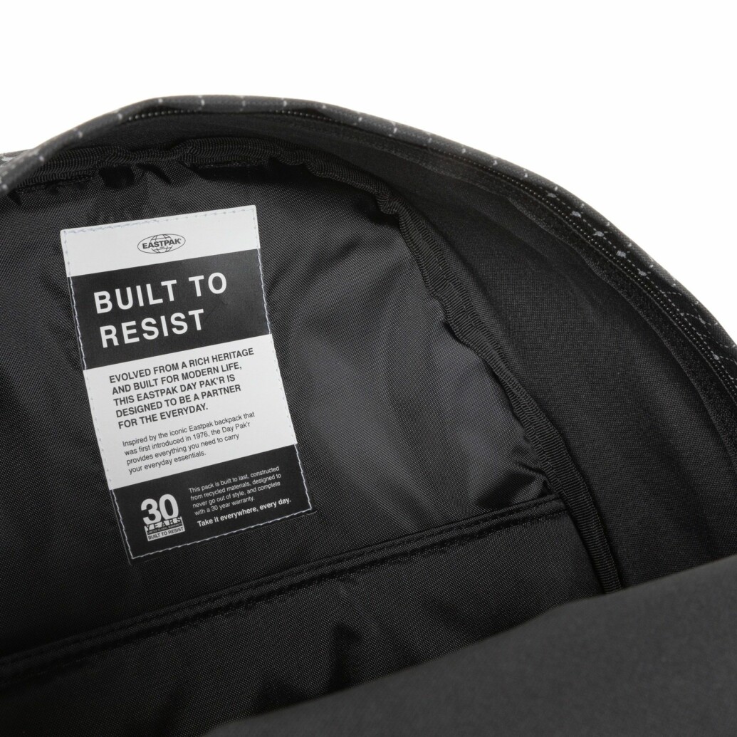 L’emblématique sac à dos Padded Pak’r a été réinventé avec encore plus de fonctionnalités, voici le modèle Day Pak’r ! Il a été pensé pour rendre les déplacements quotidiens confortables tout en transportant des affaires high tech. De conception en nylon et polyester, il se veut très léger avec une toile « indéchirable ». De plus, aucun produit animal n’est utilisé dans la fabrication de cet article, il est à 100% végan. Ce modèle possède une garantie de 30 ans par la marque Eastpak.