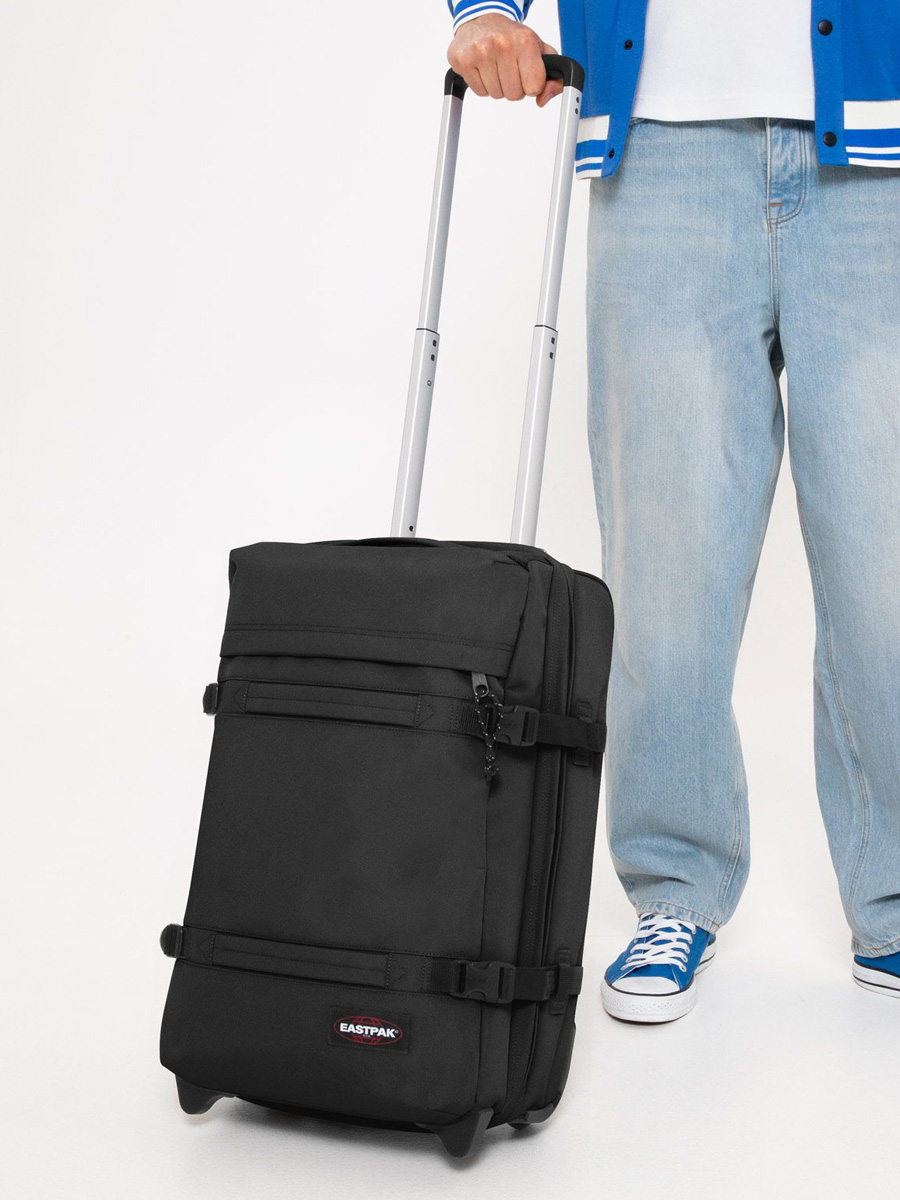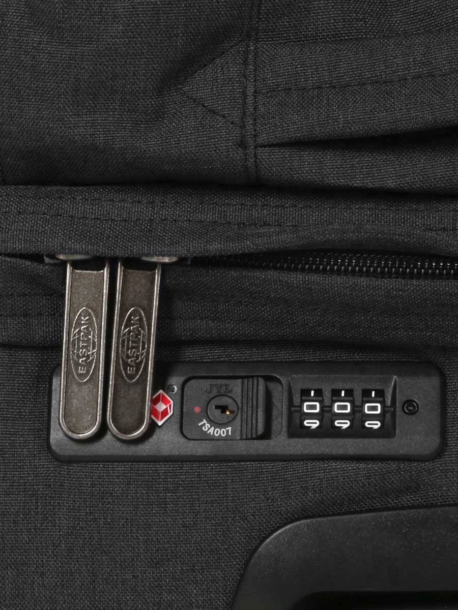 Le sac cabine Eastpak Transit’R S se tracte avec aisance à l’aide de sa poignée télescopique double canne à position réglable et de ses 2 solides roulettes. Son trolley est en plus confectionné en aluminium pour une excellente stabilité. Dans les escaliers, il peut être tenu à la main par l’une ou l’autre de ses 4 poignées renforcées (1 latérale, 1 supérieure, 2 sur le devant). Dessus, une serrure TSA à code encastrée permet de verrouiller l’accès à son contenu en un clin d’œil. Dessous, des patins rigides lui assurent une bonne stabilité en position verticale. Ses sangles de compression permettent d’ajuster son volume pour maintenir efficacement en place l’ensemble de vos affaires.