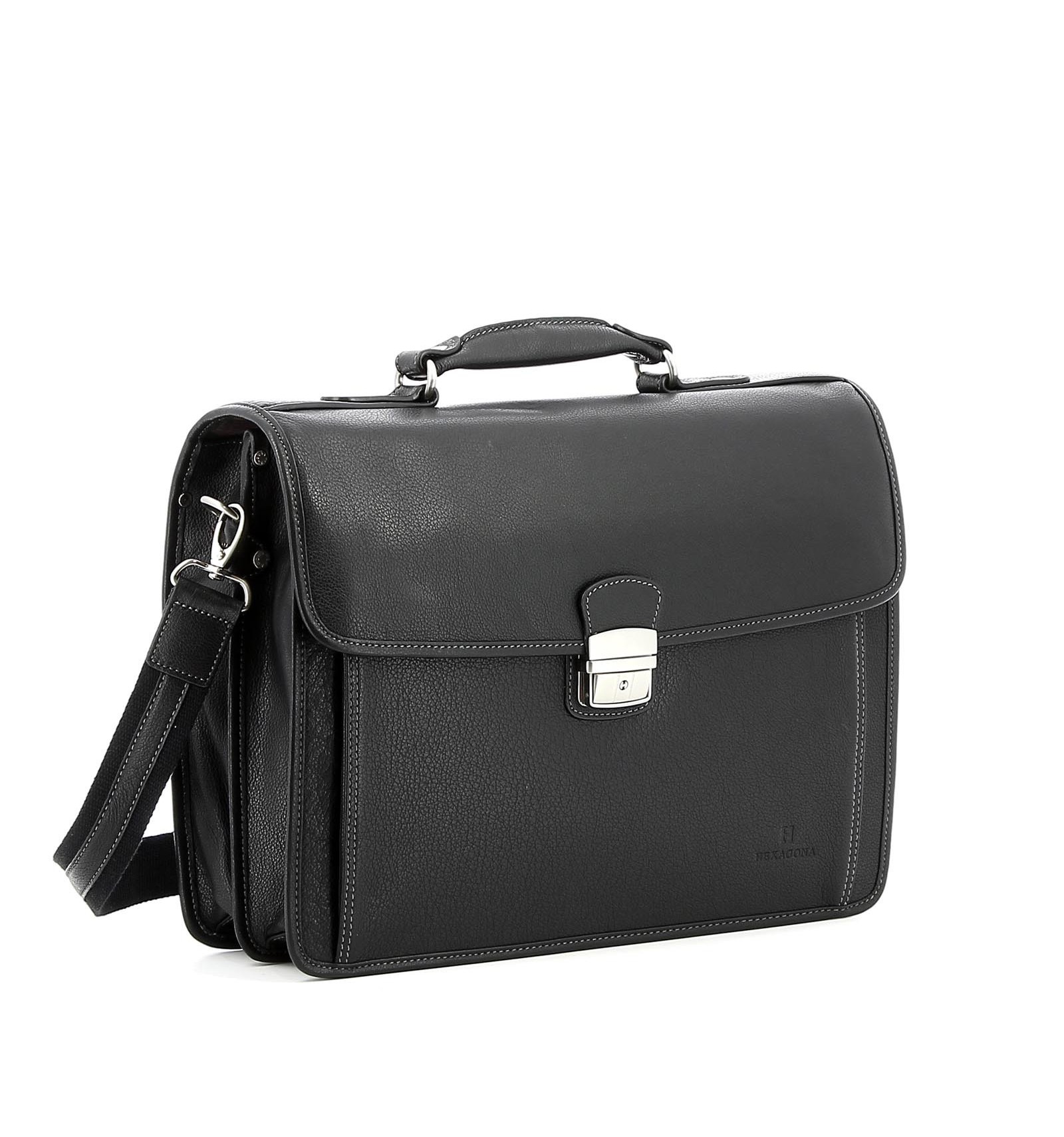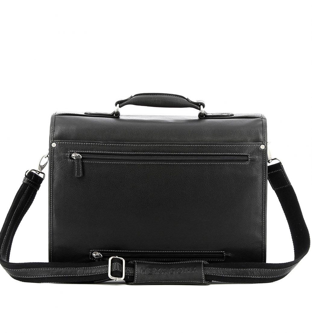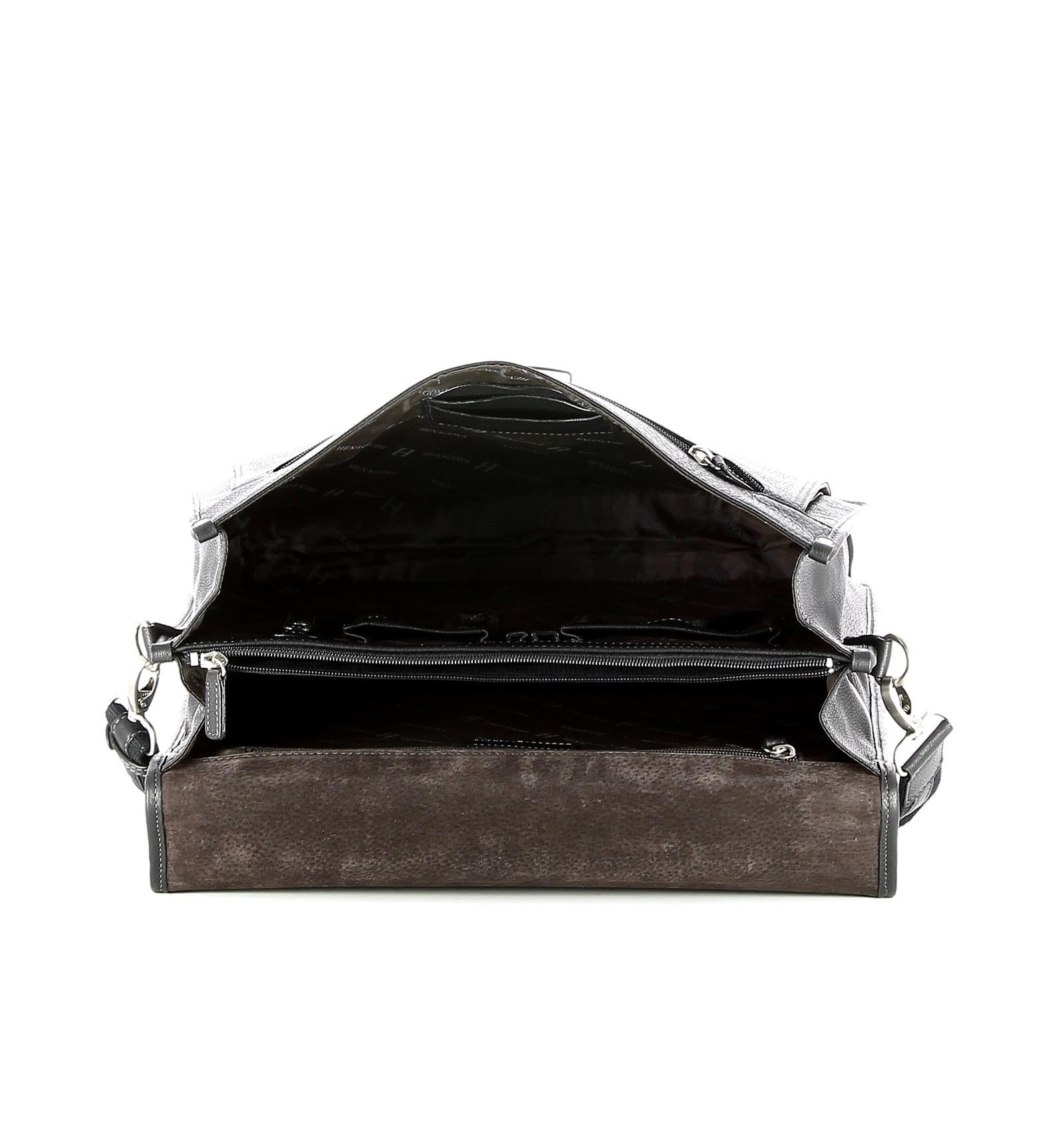 Intérieur : deux soufflets principaux avec une poche de séparation zippée, une poche plate zippée, deux poches plates (dont un compartiment téléphone), trois compartiments carte et deux espaces stylo