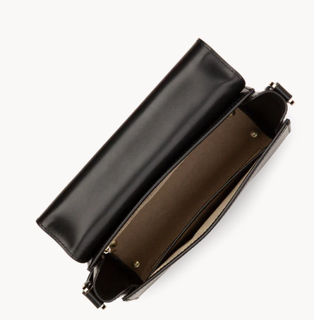 Ce sac trotteur est confectionné de cuir de vachette lisse. Il possède une poche extérieure zippée, une poche intérieure et une poche intérieure zippée. Il se porte à l’épaule ou croisé.