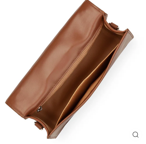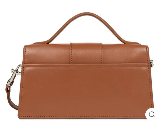 Ce sac baguette est confectionné de cuir de vachette finition lisse. Il possède une grande pochette principale avec un rabat graphique comme fermoir. Il se porte à la main, à l’épaule ou croisé.