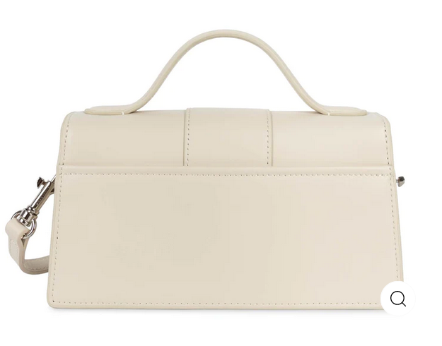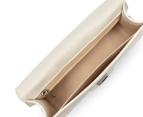 Ce sac baguette est confectionné de cuir de vachette finition lisse. Il possède une grande pochette principale avec un rabat graphique comme fermoir. Il se porte à la main, à l’épaule ou croisé.