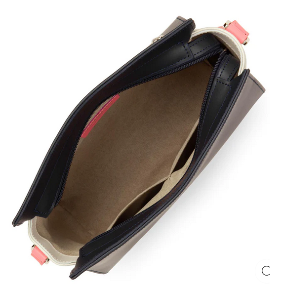 Poche arrière zippée, compartiment téléphone, poche intérieure zippée, poche intérieure simple