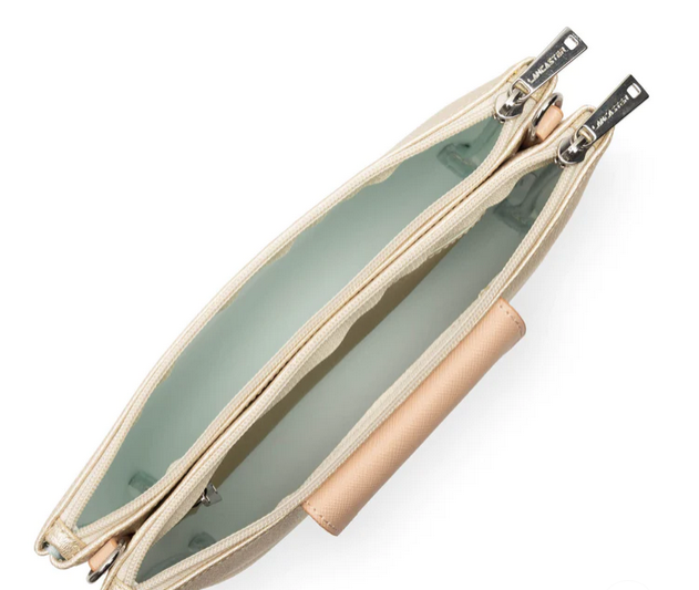Porte carte frontal, poche avant zippée, poche intérieure zippée, poche arrière zippée