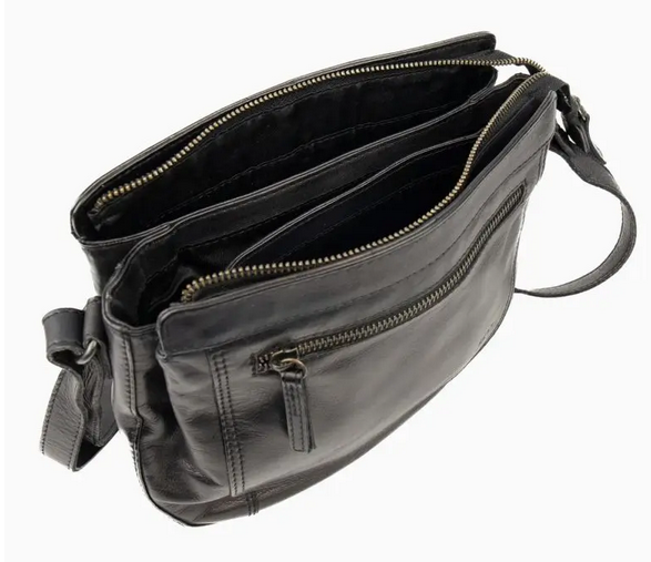 Le sac bandoulière Bear Design 41707 en noir est un accessoire élégant et pratique confectionné en cuir de vachette véritable. La couleur noire apporte une touche de sobriété et de polyvalence à ce sac bandoulière. Avec sa bandoulière longue ajustable, ce sac peut être porté de manière confortable en travers du corps, offrant ainsi une option pratique et sécurisée. Les deux poches intérieures et une poche extérieure fournissent des espaces de rangement organisés pour vos effets personnels.