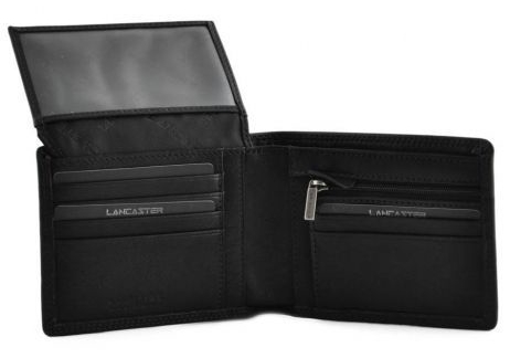 Portefeuille horizontale en cuir de vachette sauvage pleine fleur souple signé Lancaster. Il est composé de 6 emplacements pour carte bancaire, de deux poches transparentes pour carte d’identité et permis de conduire, d’une poche à billets avec séparation, d’une poche zippée pour la monnaie et trois poches plates pour vos reçus de banque, coupons de réduction et tickets de métro.