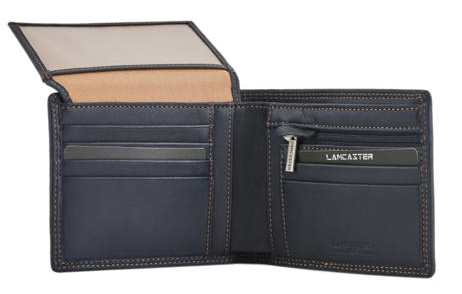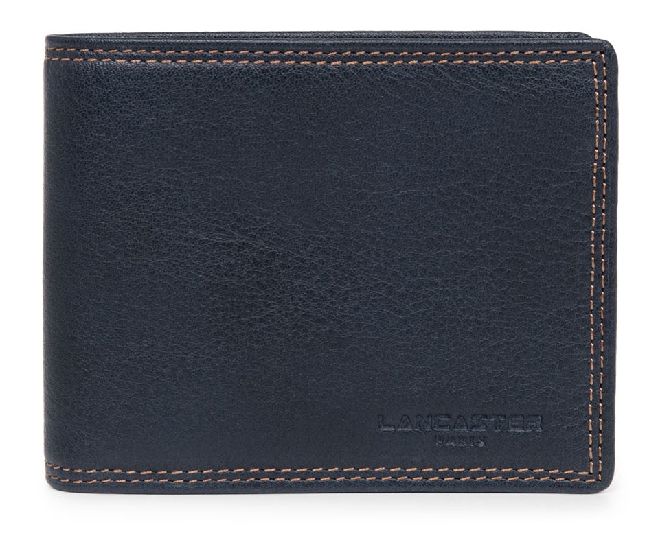 Portefeuille horizontale en cuir de vachette sauvage pleine fleur souple signé Lancaster. Il est composé de 6 emplacements pour carte bancaire, de deux poches transparentes pour carte d’identité et permis de conduire, d’une poche à billets avec séparation, d’une poche zippée pour la monnaie et trois poches plates pour vos reçus de banque, coupons de réduction et tickets de métro.
