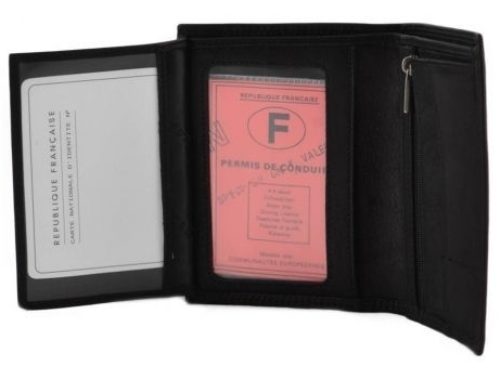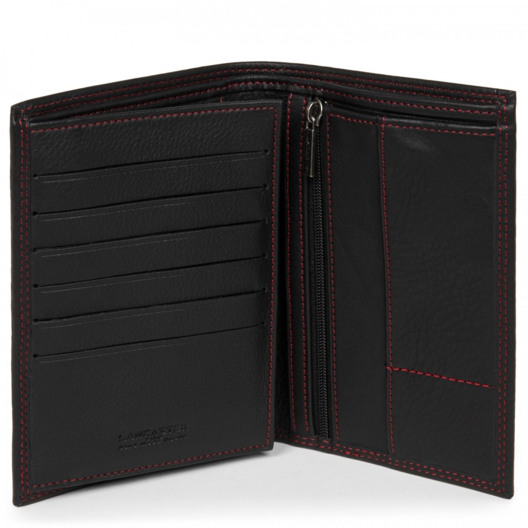 Portefeuille en cuir de vachette pleine fleur signé Lancaster. Il se compose de 6 emplacements pour cartes bancaires, d’une poche à billets, d’une poche zippée pour la monnaie, de deux poches transparentes avec pochette amovible pour permis de conduire, carte d’identité et carte grise, de deux petites poches pour y glisser tickets de métro et photos d’identité et d’une poche plate pour vos reçus de banque et coupon de réduction.