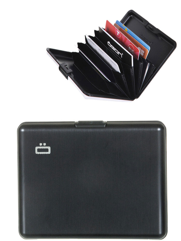 Portefeuille Ogon, rigide, en aluminium, idéal pour homme et femme. Allez à l’essentiel  : quelques billets, cartes bancaires, carte d’identité, permis de conduire.