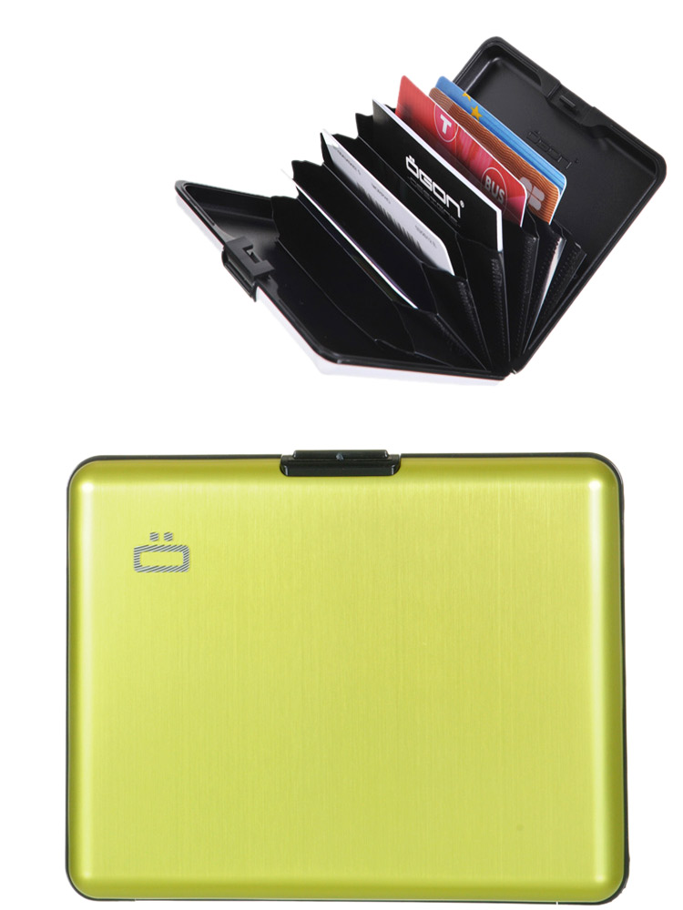 Portefeuille Ogon, rigide, en aluminium, idéal pour homme et femme. Allez à l’essentiel : quelques billets, cartes bancaires, carte d’identité, permis de conduire.