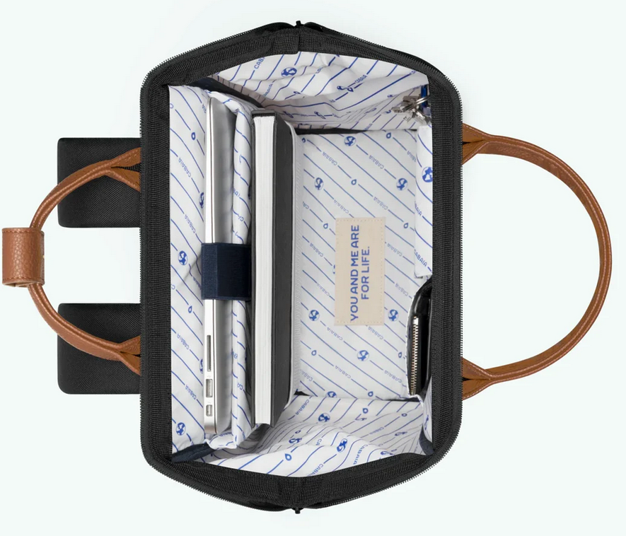 41 cm - 23 litres - 0,9 kg ~ Découvrez ce superbe sac à dos de la ligne Tour du monde proposé par Cabaïa. Ce sac à dos est un accessoire indispensable pour se rendre à l’école avec style. Composé de nylon, ce sac à dos Cabaïa est léger et souple ce qui fait de ce sac, une pièce agréable à porter au quotidien. À l’intérieur de ce sac à dos, vous trouverez un grand compartiment pour ranger un tas d’affaires scolaires comme des classeurs et cahiers A4, mais aussi un compartiment spécial pour ordinateur 15 pouces. Deux petites poches simples se trouvent également à l’intérieur de cette poche principale zippée. Sur le devant, découvrez une poche zippée interchangeable dans laquelle vous pourrez glisser vos essentiels comme votre téléphone et vos clés. Ce sac à dos Cabaïa de la ligne Tour du Monde se porte sur le dos en utilisant les bretelles réglables ou à la main grâce à l'anse et peut s’accorder avec bon nombre de tenues.