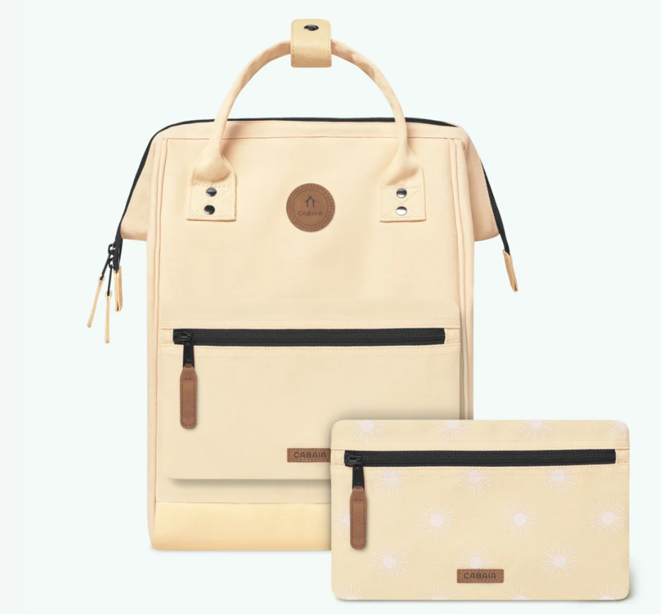 41 cm - 23 litres - 0,9 kg ~ Découvrez ce superbe sac à dos de la ligne Tour du monde proposé par Cabaïa. Ce sac à dos est un accessoire indispensable pour se rendre à l’école avec style. Composé de nylon, ce sac à dos Cabaïa est léger et souple ce qui fait de ce sac, une pièce agréable à porter au quotidien. À l’intérieur de ce sac à dos, vous trouverez un grand compartiment pour ranger un tas d’affaires scolaires comme des classeurs et cahiers A4, mais aussi un compartiment spécial pour ordinateur 15 pouces. Deux petites poches simples se trouvent également à l’intérieur de cette poche principale zippée. Sur le devant, découvrez une poche zippée interchangeable dans laquelle vous pourrez glisser vos essentiels comme votre téléphone et vos clés. Ce sac à dos Cabaïa de la ligne Tour du Monde se porte sur le dos en utilisant les bretelles réglables ou à la main grâce à l'anse et peut s’accorder avec bon nombre de tenues.