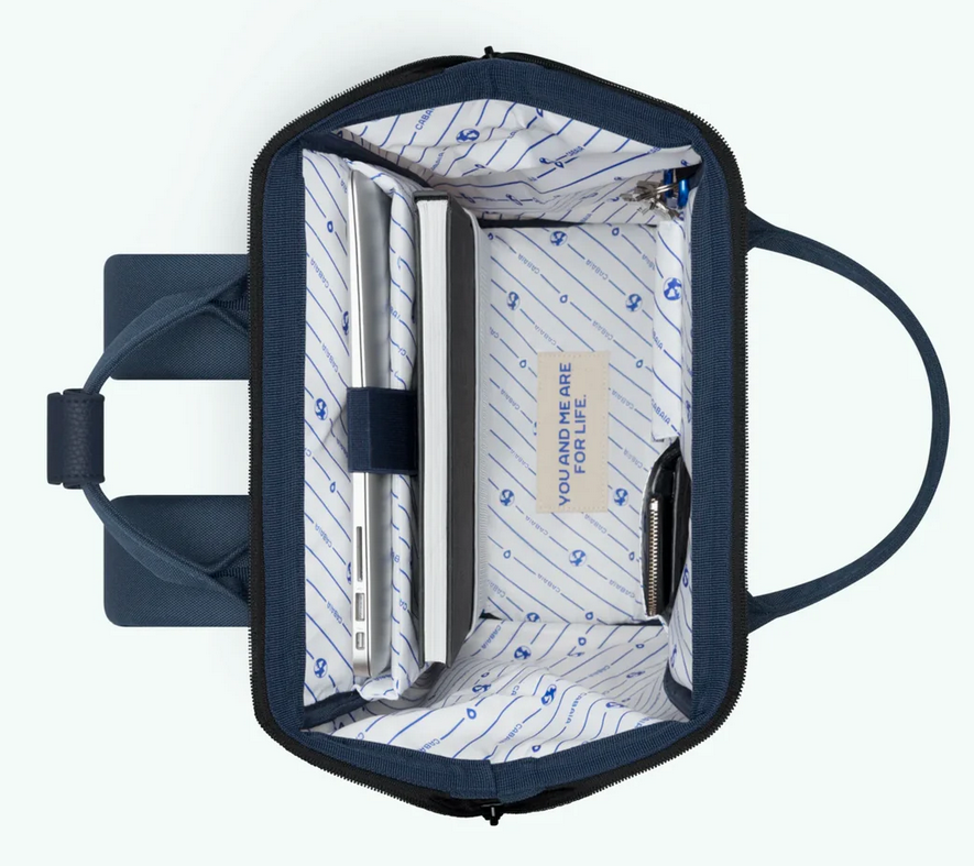41 cm - 23 litres - 0,9 kg ~ Découvrez ce superbe sac à dos de la ligne Tour du monde proposé par Cabaïa. Ce sac à dos est un accessoire indispensable pour se rendre à l’école avec style. Composé de nylon, ce sac à dos Cabaïa est léger et souple ce qui fait de ce sac, une pièce agréable à porter au quotidien. À l’intérieur de ce sac à dos, vous trouverez un grand compartiment pour ranger un tas d’affaires scolaires comme des classeurs et cahiers A4, mais aussi un compartiment spécial pour ordinateur 15 pouces. Deux petites poches simples se trouvent également à l’intérieur de cette poche principale zippée. Sur le devant, découvrez une poche zippée interchangeable dans laquelle vous pourrez glisser vos essentiels comme votre téléphone et vos clés. Ce sac à dos Cabaïa de la ligne Tour du Monde se porte sur le dos en utilisant les bretelles réglables ou à la main grâce à l'anse et peut s’accorder avec bon nombre de tenues.