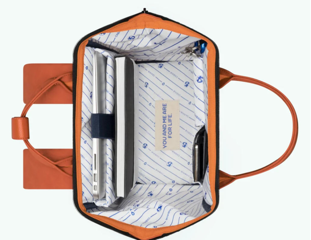 41 cm - 23 litres - 0,9 kg ~ Découvrez ce superbe sac à dos de la ligne Tour du monde proposé par Cabaïa. Ce sac à dos est un accessoire indispensable pour se rendre à l’école avec style. Composé de nylon, ce sac à dos Cabaïa est léger et souple ce qui fait de ce sac, une pièce agréable à porter au quotidien. À l’intérieur de ce sac à dos, vous trouverez un grand compartiment pour ranger un tas d’affaires scolaires comme des classeurs et cahiers A4, mais aussi un compartiment spécial pour ordinateur 15 pouces. Deux petites poches simples se trouvent également à l’intérieur de cette poche principale zippée. Sur le devant, découvrez une poche zippée interchangeable dans laquelle vous pourrez glisser vos essentiels comme votre téléphone et vos clés. Ce sac à dos Cabaïa de la ligne Tour du Monde se porte sur le dos en utilisant les bretelles réglables ou à la main grâce à l'anse et peut s’accorder avec bon nombre de tenues.