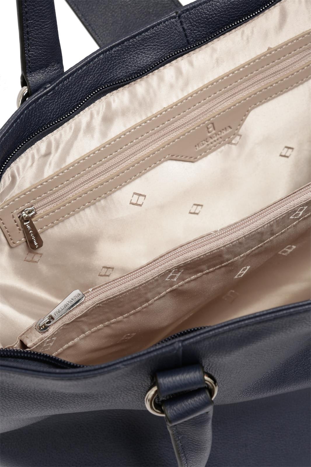 Grand cabas format A4 issu de la ligne confort signé Hexagona, réalisé en cuir de vachette. Son intérieur dispose de deux compartiments séparés par une poche centrale zippée, parfait pour une organisation optimale. Lors de vos journées trépidantes, portez-le croisé afin de ne pas vous encombrer les mains grâce à sa bandoulière amovible.