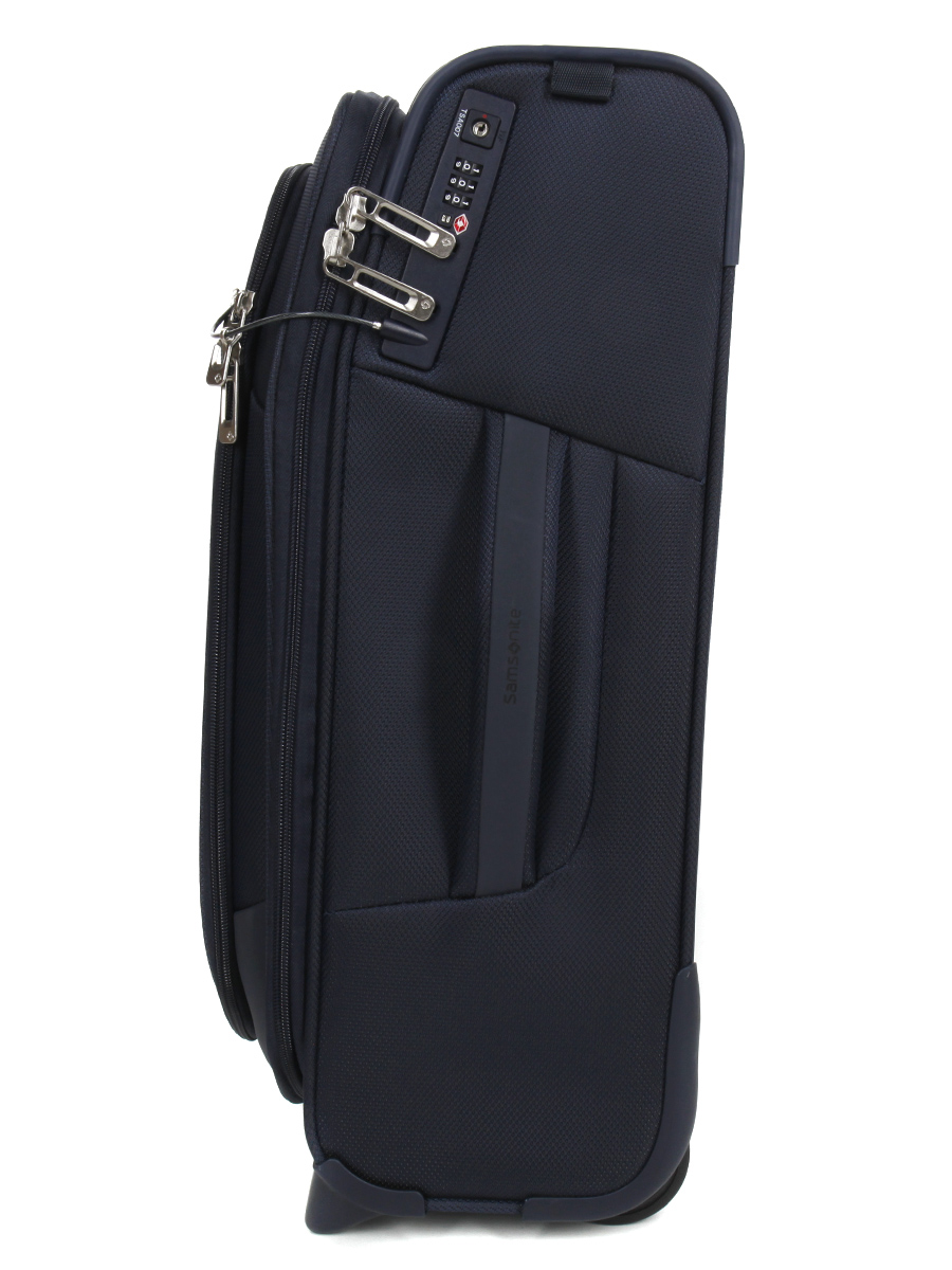 La valise extensible Samsonite Respark présente des mesures de anti-effraction particulièrement efficaces : serrure TSA à code, câble pour sécuriser toutes les fermetures à glissière, et double zip lorsque le soufflet est fermé. Elle se tracte aisément avec son trolley double tube ajustable et ses deux roulettes. Deux poignées moussées permettent en outre de la soulever confortablement. Le porte étiquette rétractable permet de la retrouver facilement en cas de perte. Elle reste stable en toutes circonstances grâce à ses patins de protection.