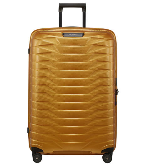 Valise rigide 75 cm Proxis extensible signée Samsonite. Cette valise proxis est réalisée à partir de Roxkin, du polypropylène en multicouche, un matériau exclusif développé par Samsonite. Performante, cette valise rigide est très légère et résistante. Sa coque reprend facilement sa forme en cas de chocs. Son intérieur est doté de deux compartiments distincts avec sangles de maintien pour vos vêtements. Vous pourrez vous inscrire au programme wecare de Samsonite et ainsi personnaliser votre bagage Samsonite avec une petite étiquette en cuir. Ergonomique, la valise Samsonite est dotée de quatre roues doubles silencieuses. Fabriquée en Europe, cette valise 75cm sera parfaite pour un séjour d’une à deux semaines.