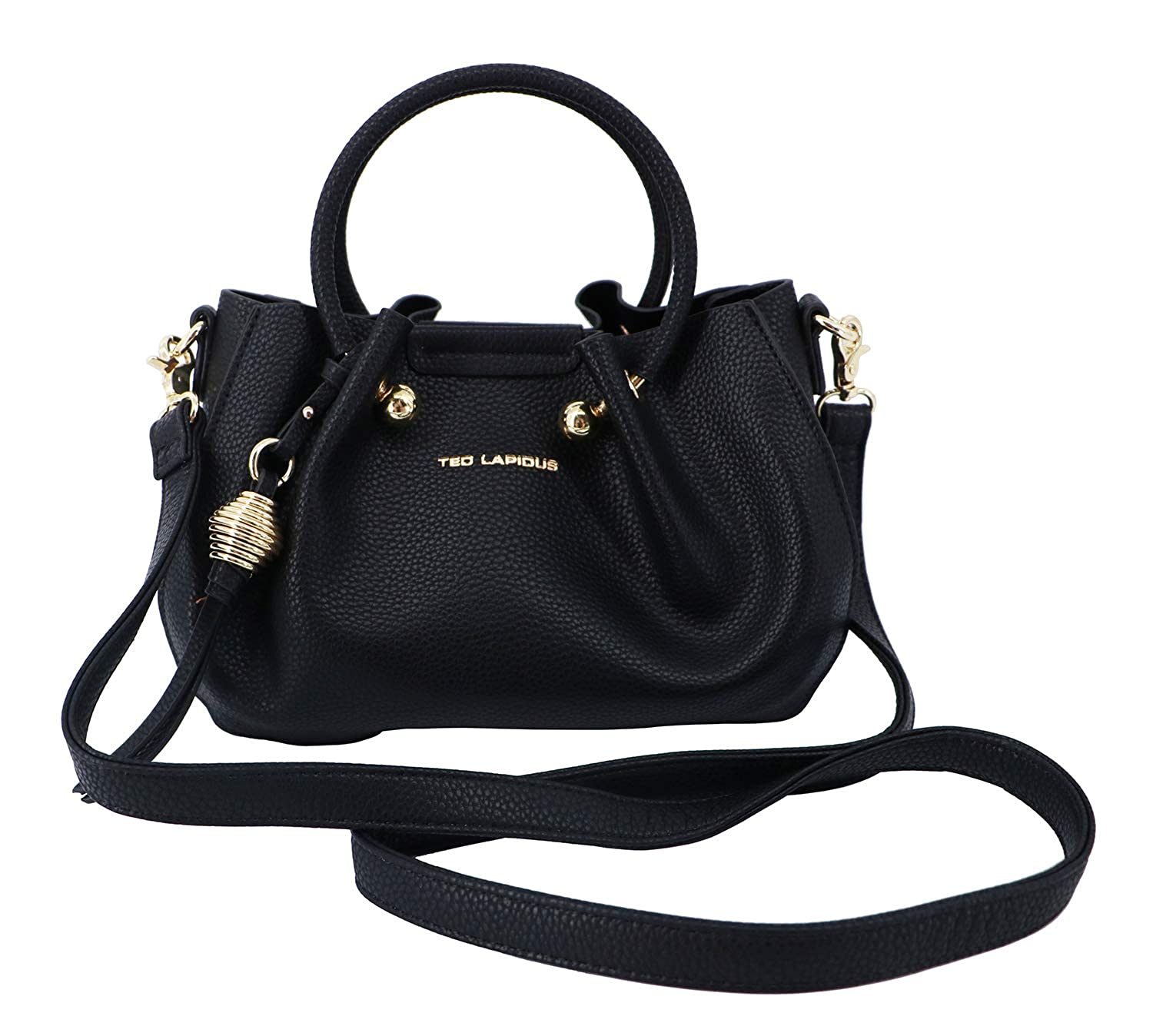 L’extérieur du sac Ted Lapidus Gretel est composée d’un simili cuir grainé. Il est doté de deux anses pour un porté main agréable et d’une fine bandoulière amovible pour être porté à l’épaule. Les anses en forme arrondies proposent une finition en métal doré, on retrouve aussi un beau bijoux de sac.