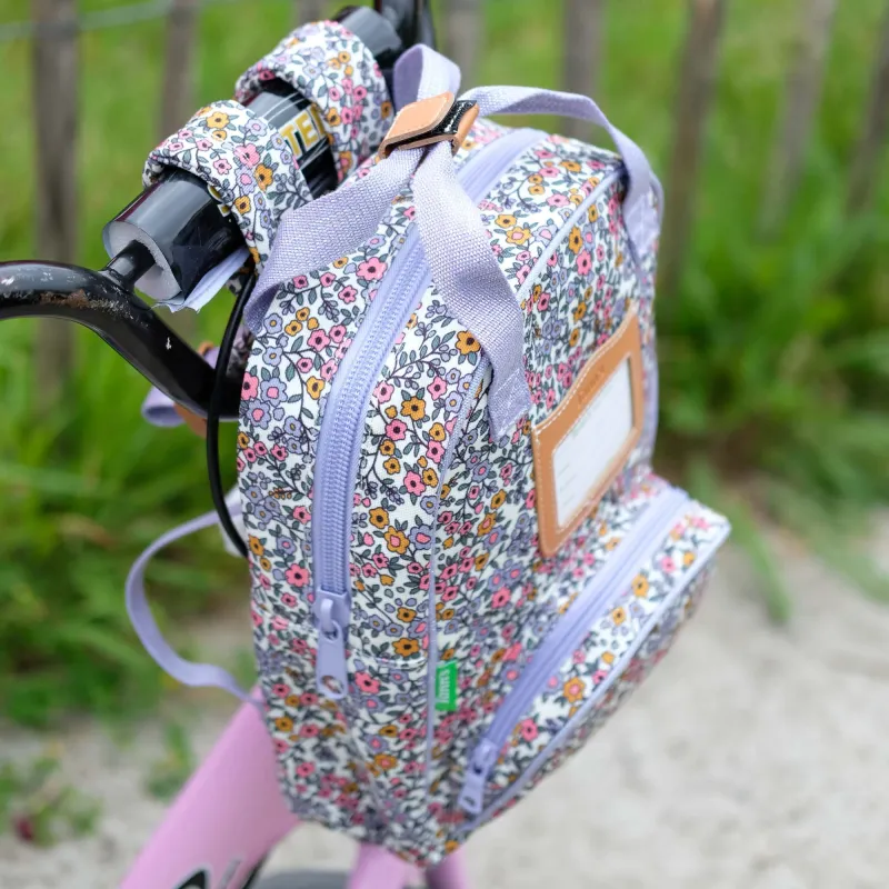 Avec sa anse principale lilas, ce sac allie simplicité et touche florale. Ce sac à dos est idéal pour les premiers pas à l’école ou chez la nounou. Il est aussi très pratique pour les balades et les activités extrascolaires. Pour accompagner les globe-trotteurs dans toutes leurs aventures, ce sac à dos s’accroche aux guidons des trottinettes grâce à un système de pressions au niveau des bretelles.