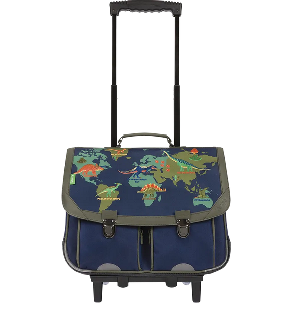 Laissez-les retourner à l’ère des dinosaures avec ce trolley au look paléontologique ! Ses motifs brodés de dinosaures sur une carte du monde et ses couleurs vintages bleues, vertes et kaki en font un compagnon de classe aussi pratique que stylé. Ce cartable trolley Tann’s d’un dos de 38 cm est adapté aux classes du CP/CE1/CE2.