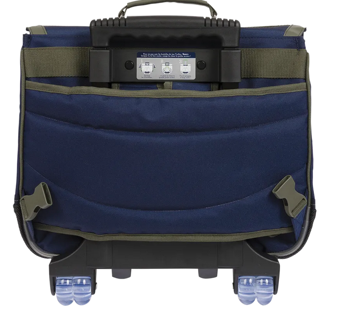 Housse cache-roulettes pour ne pas se tacher lorsque le cartable est porté sur le dos