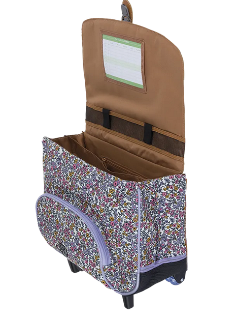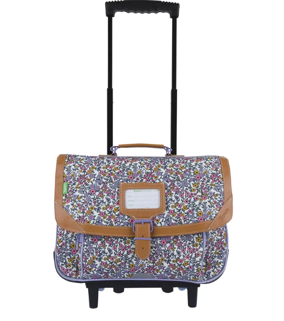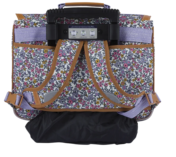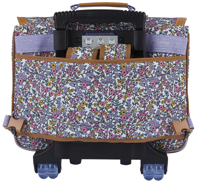 Ses motifs floraux délicats, rehaussés de reflets subtils, dessinent une ambiance printanière et apaisante. La palette douce de rose, mauve et doré évoque avec discrétion la douceur d’un jardin en fleurs. Ce cartable trolley Tann’s d’un dos de 38 cm est adapté aux classes du CP/CE1/CE2.