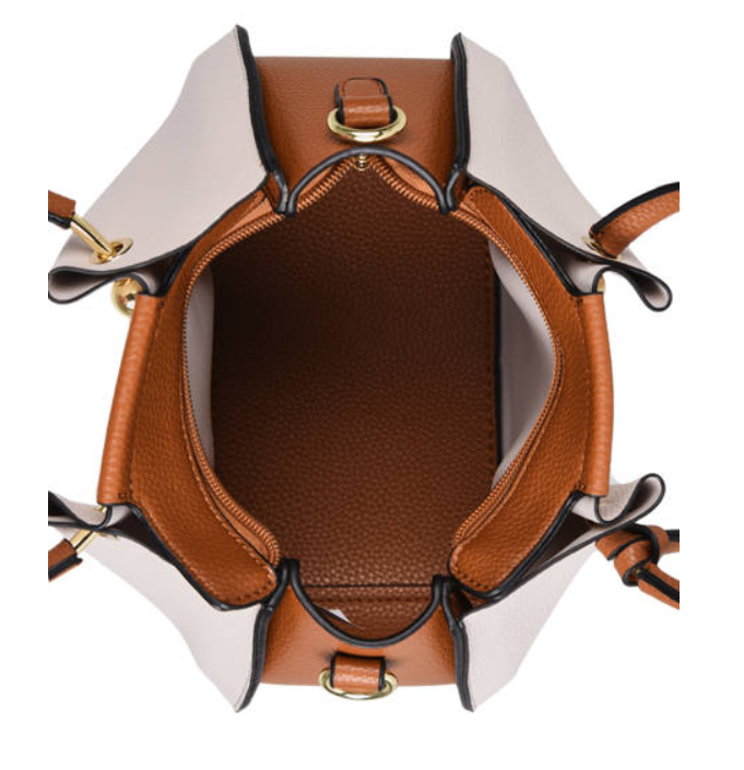 L’extérieur du sac Ted Lapidus Gretel est composée d’un simili cuir grainé. Il est doté de deux anses pour un porté main agréable et d’une fine bandoulière amovible pour être porté à l’épaule. Les anses en forme arrondies proposent une finition en métal doré, on retrouve aussi un beau bijoux de sac.