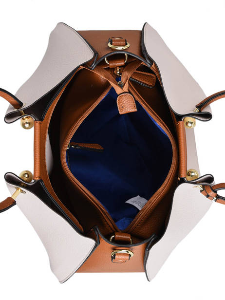 L’extérieur du sac Ted Lapidus Gretel est composée d’un simili cuir grainé. Il est doté de deux anses pour un porté main agréable et d’une fine bandoulière amovible pour être porté à l’épaule. Les anses en forme arrondies proposent une finition en métal doré, on retrouve aussi un beau bijoux de sac.