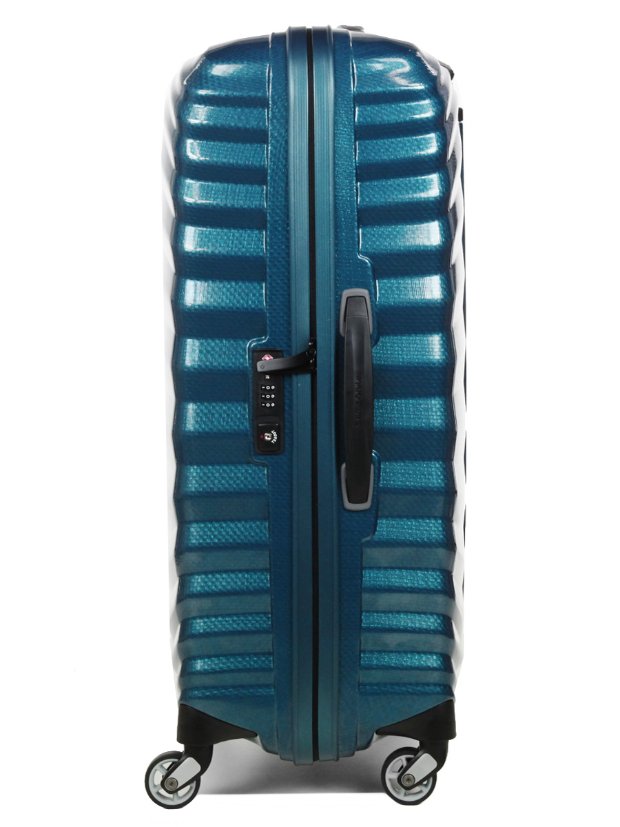 Cette valise 4 roues Samsonite Lite Shock utilise un système de fermeture à glissière de qualité, doté d’un zip étanche et sécurisé par une serrure à code TSA intégrée. Celle-ci est fortement conseillée pour voyager vers les USA, les douaniers américains disposant d’une clé spéciale pour ouvrir toutes les valises qu’ils souhaitent inspecter. A l’extérieur, on trouve également un porte adresse au dos.