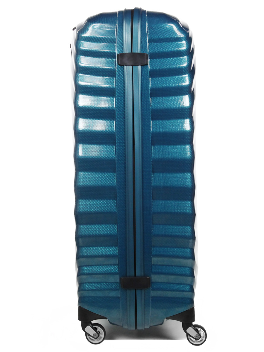 La valise Samsonite Lite Shock 75 cm dispose d’un design auto-renforcé (brevet en cours) inspiré par la nature. En effet, la coque offre un effet d’ondulation d’une pierre qui tombe dans l’eau, ce qui en fait un bagage très tendance. Fabriquée en Curv (polypropylène tissé) en Allemagne par Propex, cette valise de soute est d’une résistance extrême. En effet, ce matériau est ultra robuste, même à basses températures : il s’agit de la matière utilisée pour les gilets pare-balle ! Gage de qualité et de fiabilité, cette valise fabriquée en Europe est garantie 10 ans par la marque.