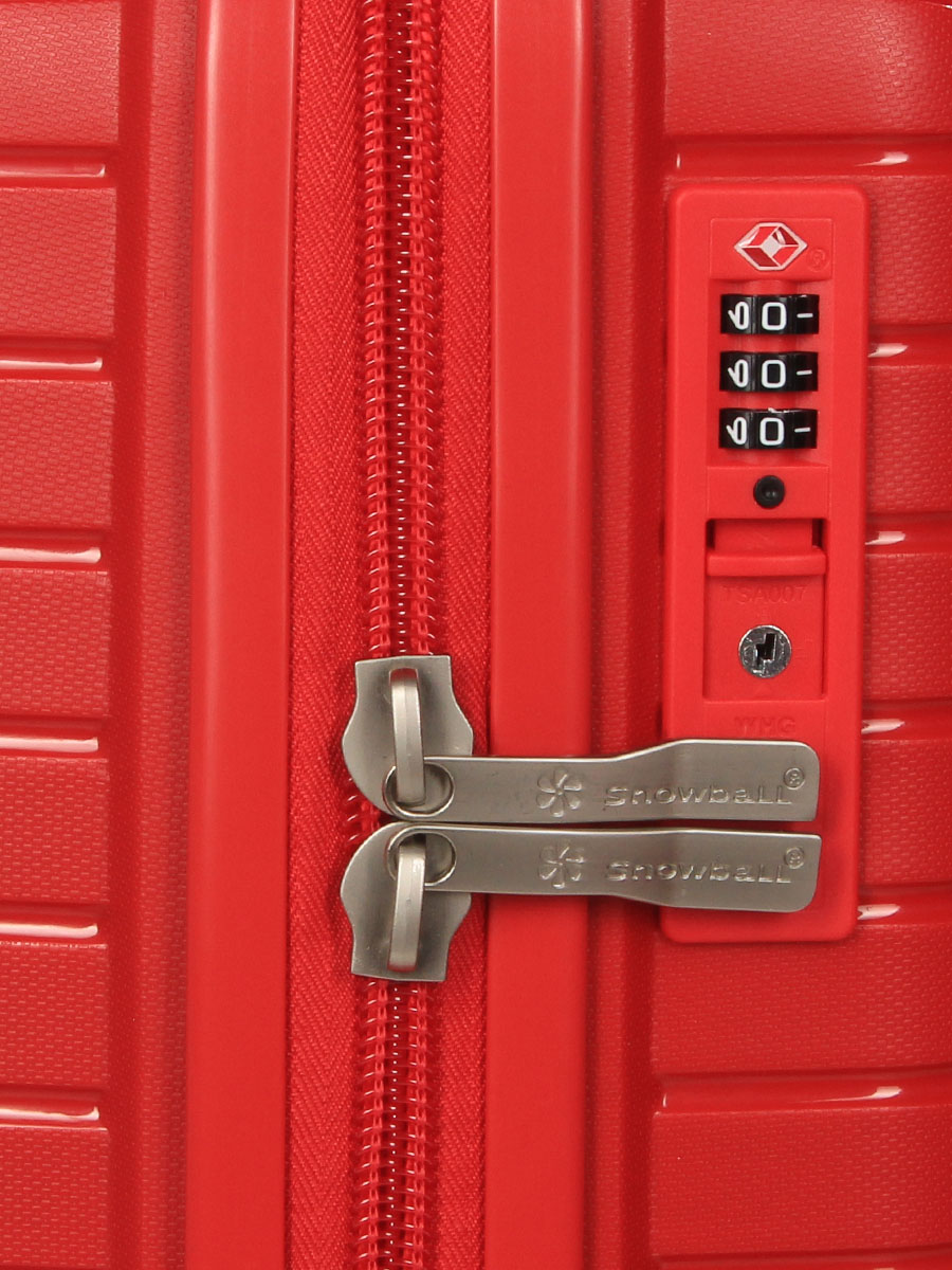 La valise Snowball Oruro se déplace du bout des doigts avec son trolley double tube à position réglable et ses 4 doubles roues pivotantes à 360°. Dessus, une poignée souple facilite sa prise en main pour la déposer sur un rack à bagages. Sur le côté, une serrure TSA à code encastrée permet un verrouillage simple et rapide.