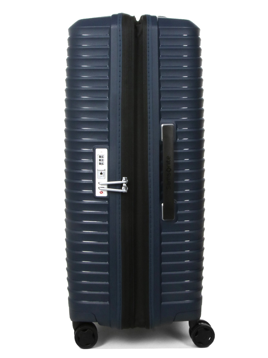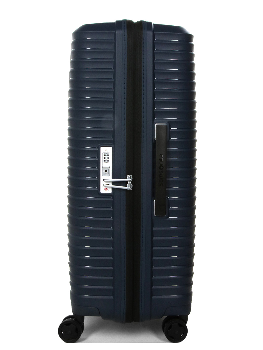 La valise Samsonite Upscape glisse avec fluidité sur ses 4 doubles roues pivotantes à 360°. Pour la tracter à côté ou derrière soi, il suffit de saisir sa poignée télescopique double tube. Pour des trajets en toute tranquillité, elle est équipée d’une fermeture à zip inversé, d’une serrure TSA à code à combinaison chiffrée personnalisable et d’un porte adresse. Pour faciliter sa prise en main, notamment pour la déposer dans le coffre d’un véhicule, elle est munie de 2 poignées souples et douces. Enfin, des petits patins latéraux rigides lui confèrent une protection supplémentaire contre les divers aléas liés au transport en soute.