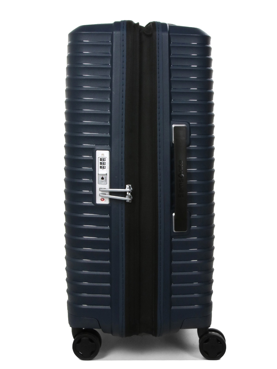 Les quatre roues doublées et le trolley double tube de la valise extensible Samsonite Upscape lui confèrent un grand confort de déplacement. La serrure TSA à code permet de sécuriser simplement son contenu tout en s’assurant qu’elle ne sera pas abîmée en cas de contrôle douanier. Des poignées ergonomiques stratégiquement placées facilitent l’instant tant redouté du tapis d’enregistrement. Pour éviter les éraflures à l’ouverture, elle est dotée de patins de protection latéraux. Elle est fournie avec 4 autocollants à remplir et à coller sur le porte-étiquette présent sous la poignée du trolley.