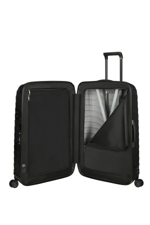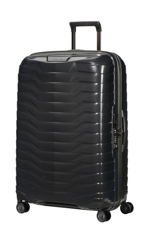 Valise rigide 81 cm Proxis extensible signée Samsonite. Cette valise proxis est réalisée à partir de Roxkin, du polypropylène en multicouche, un matériau exclusif développé par Samsonite. Performante, cette valise rigide est très légère et résistante. Sa coque reprend facilement sa forme en cas de chocs. Son intérieur est doté de deux compartiments distincts avec sangles de maintien pour vos vêtements. Vous pourrez vous inscrire au programme wecare de Samsonite et ainsi personnaliser votre bagage Samsonite avec une petite étiquette en cuir. Ergonomique, la valise Samsonite est dotée de quatre roues doubles silencieuses.